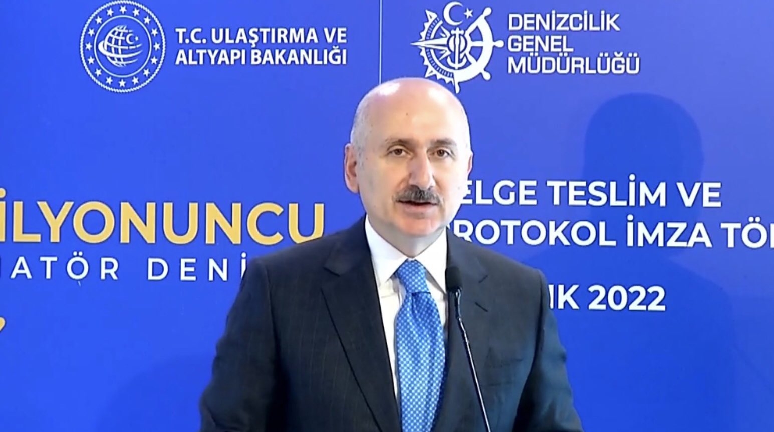 Bakan Karaismailoğlu, "Son 50 yılda, yük hacminin 20 kattan daha fazla büyüdüğü denizcilik, en stratejik sektör konumundadır. Ülkemizde 2021 yılında hacim olarak ithalat amaçlı yüklerin yaklaşık yüzde 93'ü ihracat amaçlı yüklerin de yaklaşık yüzde 81’i denizyolu ile taşınmıştır. Bugün, 31,3 milyon detveyt tonluk kapasitemizle, küresel deniz ticaret filosu olmasıyla dünya sıralamasında bir basamak daha çıkmayı ve 14. sıraya yükselmeyi öngörüyoruz. Ayrıca, Türk Bayraklı gemi tonajımızın da uzun zaman sonra, bu yıl artacağını görüyoruz. 2002 yılında yalnızca 37 olan tersane sayımızı 84’e, 149 olan liman sayımızı ise 217’ye çıkardık. Dünya genelinde konteyner elleçlemelerinde yüzde 1,2’lik düşüş, toplam yük elleçlemesinde yüzde 3,8’lik azalma kaydedildi. Ancak, ülkemiz limanlarında elleçlenen konteyner miktarı bir önceki yıla göre yüzde 8,3 arttı ve geçen yıl 12,6 milyon TEU olarak gerçekleşti. Elleçlenen toplam yük miktarımızı ise bir önceki yıla göre yüzde 6 oranında artırdık, 526 milyon tona yükselttik. Büyümemizi bu yılda sürdüreceğimizi ve 2022 yılı sonunda toplam 545 milyon ton yük elleçleneceğini öngörüyoruz. 2022 Ocak-Ekim döneminde, Rusya-Ukrayna savaşına rağmen geçen yılın aynı dönemine nazaran limanlarımızda elleçlenen yük miktarında yüzde 5 artış kaydedildi. Dünyada yaşanan ekonomik krize, ülke ekonomilerindeki küçülme ve durgunluk tehlikesi ile savaşlara rağmen, ülkemizin sadece deniz ticaretinde elde ettiği bu rakamlar yatırım, istihdam, üretim, ihracat ve cari fazla hedefi ile yürüdüğümüz yolda yazdığımız başarı hikâyesinin önemli bir parçasıdır" diye konuştu.