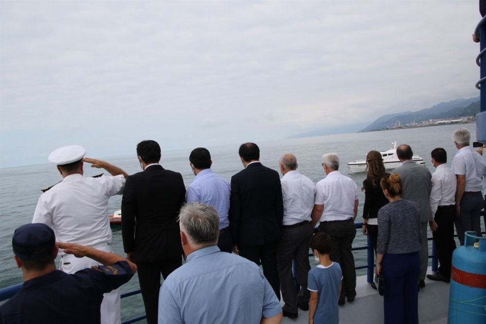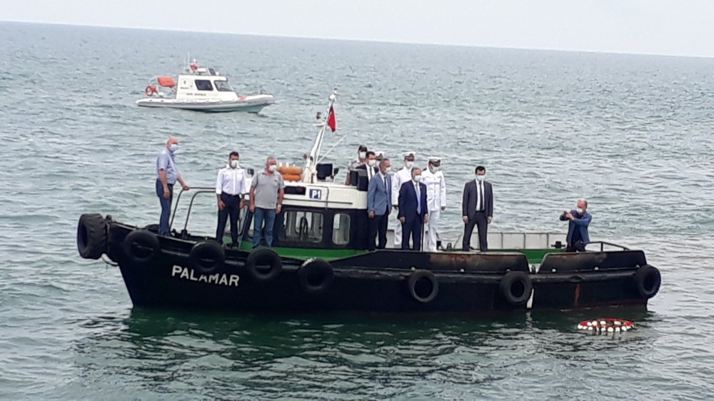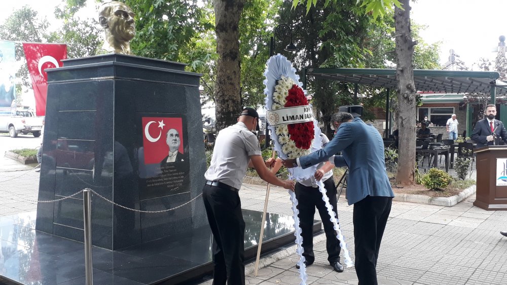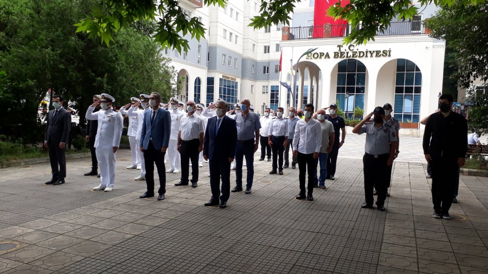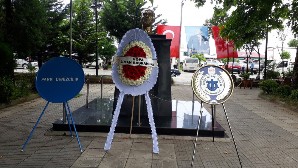 Burada Hopa Limanından gelen Palamar tarafından Denize açılan Hopa Kaymakamı Abdurrezzak Canpolat, Liman Başkan vekili, DTO Temsilcisi ve HOPAPORT Güvenlik amiri tarafından Atatürk ve tüm deniz şehitleri anısına denize çelenk bıraktılar. Bu arada HOPAPORT’a ait NECEM-16 Römorkörü tarafından 1 dakika süreyle Deniz Şehitlerini anma adına sirenini çaldı ve ardından törende sona erdi.