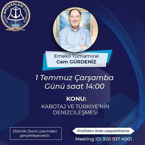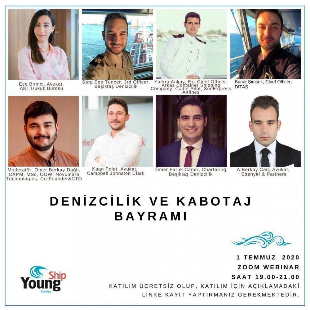 Saat 14:00'te başlayacak olan Gemi Brokerları Derneği'nin düzenlediği ''Kabotaj ve Türkiye'nin Denizcileşmesi'' başlıklı zoom toplantısının ardından saat 19:00'da Young Ship tarafından gerçekleştirilecek olan ''Denizcilik ve Kabotaj Bayramı'' isimli zoom toplantısı izleyicileriyle buluşacak.