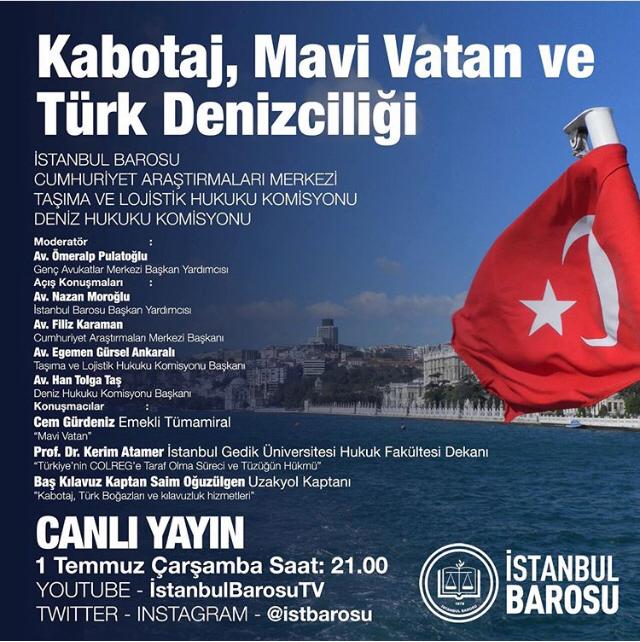 Saat 21:00'de ise İstanbul Barosu'nun düzenlediği ''Kabotaj, Mavi Vatan ve Türk Denizciliği'' zoom toplantısı izleyicileriyle buluşacak.