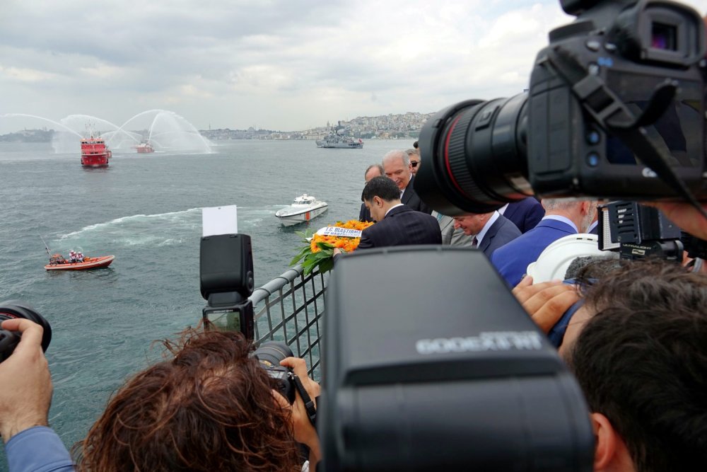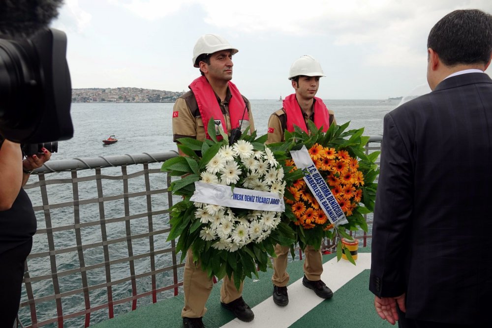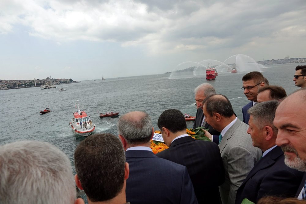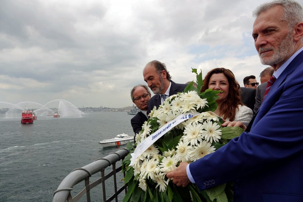 Buradan Beşiktaş iskelesinde bekleyen Kıyı Emniyeti gemisine binen Vali Şahin ve beraberindeki heyet, İstanbul Boğazı'na çelenk bıraktı ve Boğaz'da gerçekleştirilen töreni izledi.