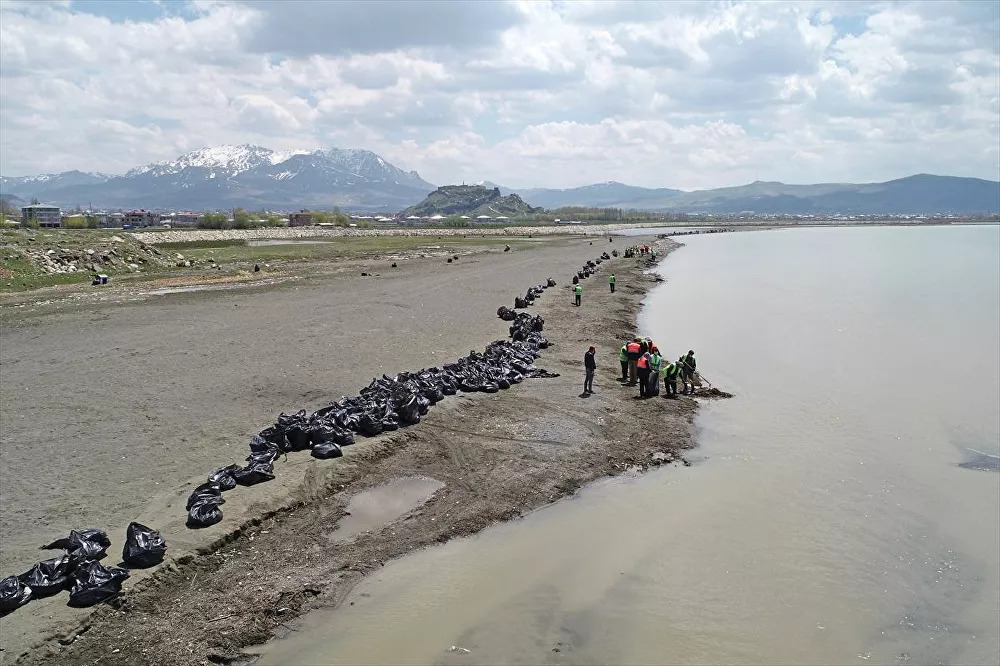 100 kişilik ekip Van Gölü sahilinde 110 ton çöp topladı