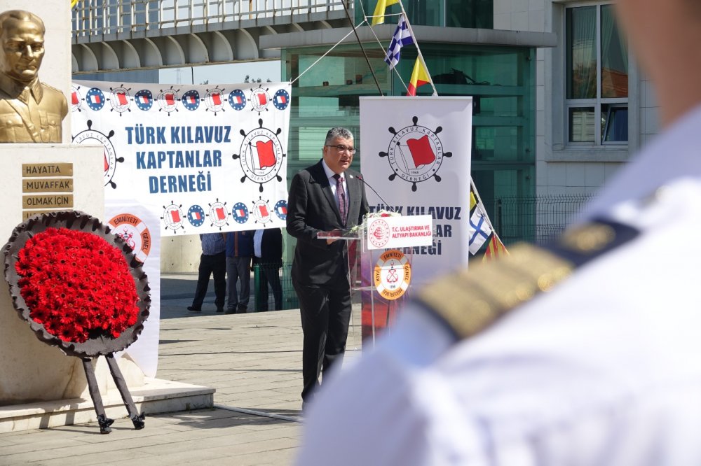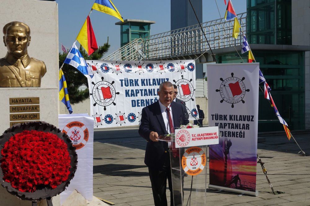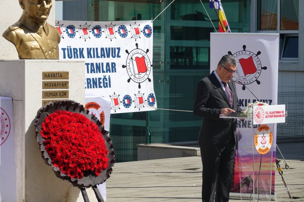 Bu etkinliği pandemi şartları altında dahi her yıl aksatmadan gerçekleştiren ve görev şehitlerini unutmayan Türk kılavuz kaptanlar derneğine tebriklerimi iletmek istiyorum. Gğünğmüzde küresel yükleri,n yüzde 80den fazlası denizyoluyla taşınmaktadır. Başta poandemi olmak üzere yakın zamanda yaşadığüımız krizler göstermiştir ki ulaşımda deniz yolunun vazgeçilmezliği hayati önemi artarak devam edecektir. Bu büyüklükte bir ekonomik hareketin sürdürlmesindeki şüphesiz en önemli unsurlardan bir tanesi gemilerin denizlerdeki emniyetli sevk ve idaresi oalcaktır. Denizde can ve mal kaybına neden olabilecek her türlü doğal tehlike ve engeller içeren kısıtlı deniz alanları, limanalr ve su yollarında tehlikelere karşı güvenli ve tehlikelere karşı yol alabilme ihtiyacı dünyanın en eski mesleklerinden biri olan kılavuzluk mesleğinin çıkmasına sebep olmuştur. Gemi ve yükün dışında İçindeki mürettebatın da canının emanet edildiği kılavuz kaptanlık mesleği bilgi ve tecrübe gerekmektedir. Kılavuz kapotanlar ayrıca Gemiyi mürettebaytı ve yükünü tehlikeye sokabilecek acil durumlara karşı tereddüt etmeden en etkili manevra kararlarını verebilecek kadar serin kanlı hareket etme kabiliyetine de sahip insanlardır. Tüm teknolojik gelişmelere rağmen Türk Boğazları önlerinde olduğu gibi tehlikeli su yolları söz konusu olduğunda Kılavuz Kaptanların bilgisi ve tecrübesi olmadan 100’de 100 seyir güvenliği tahsis etmek mümkün görülmemektedir.Kılavuz kaptanları türk boğazlarında ve maviye açılan limanlarımızda tyşanaabilecek kazaları ve felaketleri engellemek adına çok önemli bir görevi yerine getirmektedirler. Kılavuz kaptanlarımız güvenli bir deniz trafiği için vazgeçilmez unsurlardır. Bu tören vesilesiyle canları pahasına görev yapan kılavuz kaptanlarımıza minnet ve şükranlarımı sunarken, görev başında hayatını kaybedenler ile ebediyete işntikal etmiş kaptanlarımıza Allahtan rahmet diliyorum.’’
