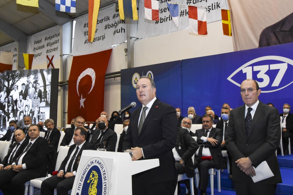 İTÜ Denizcilik Fakültesi Dekanı Prof. Dr. Özcan Arslan törende yaptığı konuşmada, “Bugün büyük bir mutluluk ve gurur içindeyim. Öğrencisi, mezunu ve hocası olmaktan gurur duyduğum, Türk denizciliğinin en kıymetli eğitim kurumu olan İstanbul Teknik Üniversitesi Denizcilik Fakültesi’nin dekan vekili olarak bu kürsüden sizlere hitap etmenin mutluluğunu yaşıyorum. Bu sorumluluğun ve büyüklüğünün farkındayım,” dedi. İTÜ Denizcilik Fakültesi’nin dekanlığına ilk kez okul mezunu bir isim olan Prof. Dr. Özcan Arslan’ın atanması uzun süre alkışlandı.
