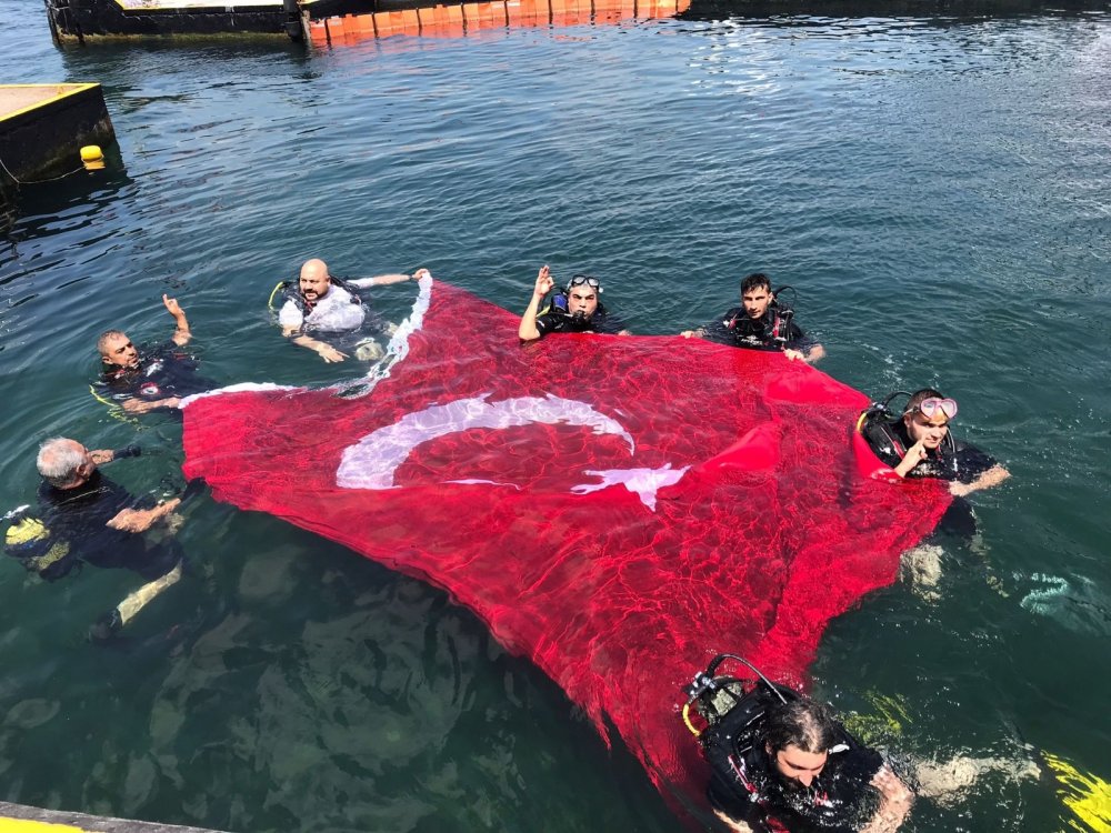 Görme engelli Hamza Demir ise "Bugün biz rahat yaşayalım diye birileri ailelerinden vazgeçti. Kimileri gazi, kimileri şehit oldu. Biz onların anısına bir şeyler yapmaya çalıyoruz. Onların yaptığı fedakarlık karşısında yaptığımız bizim hiçbir şey. Bugün burada '15 Temmuz'da bayrağımızı indirmeye çalıştılar ama biz bugün su altında bayrak açıyoruz. Başarılı olamadılar' mesajı veriyoruz" diye konuştu.