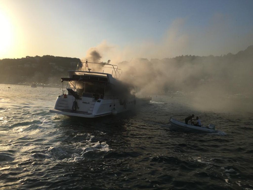 Bebek Koyu mevkisinde 17 metre boyundaki bir teknenin alev aldığı bildirildi.