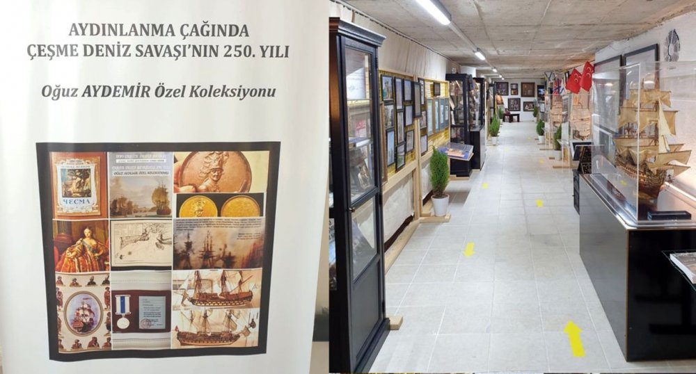 18. yüzyılın en önemli olaylarından biri olan ve Osmanlı Donanması açısından önemli bir kilometre taşı niteliğindeki 1770 Çeşme Deniz Savaşı’nın 250. yıldönümü anısına Çeşme’de özel bir sergi açıldı. Sanayici, tarih araştırmacısı, koleksiyoner, Türkiye Sualtı Arkeolojisi Vakfı (TİNA) Başkanı Oğuz Aydemir; 20 yıldır çeşitli ülkelerden topladığı, birçok müzayededen yüksek rakamlar ödeyerek satın aldığı ‘1770 Osmanlı Rus Deniz Savaşı’na ait belge ve objeleri Çeşme’deki evinin bir bölümünde 7 Temmuz’dan bu yana sergiliyor. Sergi yıl boyunca açık olacak. Sergiyi bugüne dek tarih, kültür, deniz ve barış tutkunu ilgili ve önemli yaklaşık 200 kişi ziyaret ederken, bu ziyaret süresince de konuyla alakalı 40’ar dakikalık bilgi aldılar. Sergide Çeşme’nin ve açıklarında gerçekleştirilen savaşın hem Türk deniz tarihi hem de Rusya açısından çok önemli birer dönüm noktası olmasına, denizlerin önemine ve aydınlanma dönemine dikkat çekiliyor.