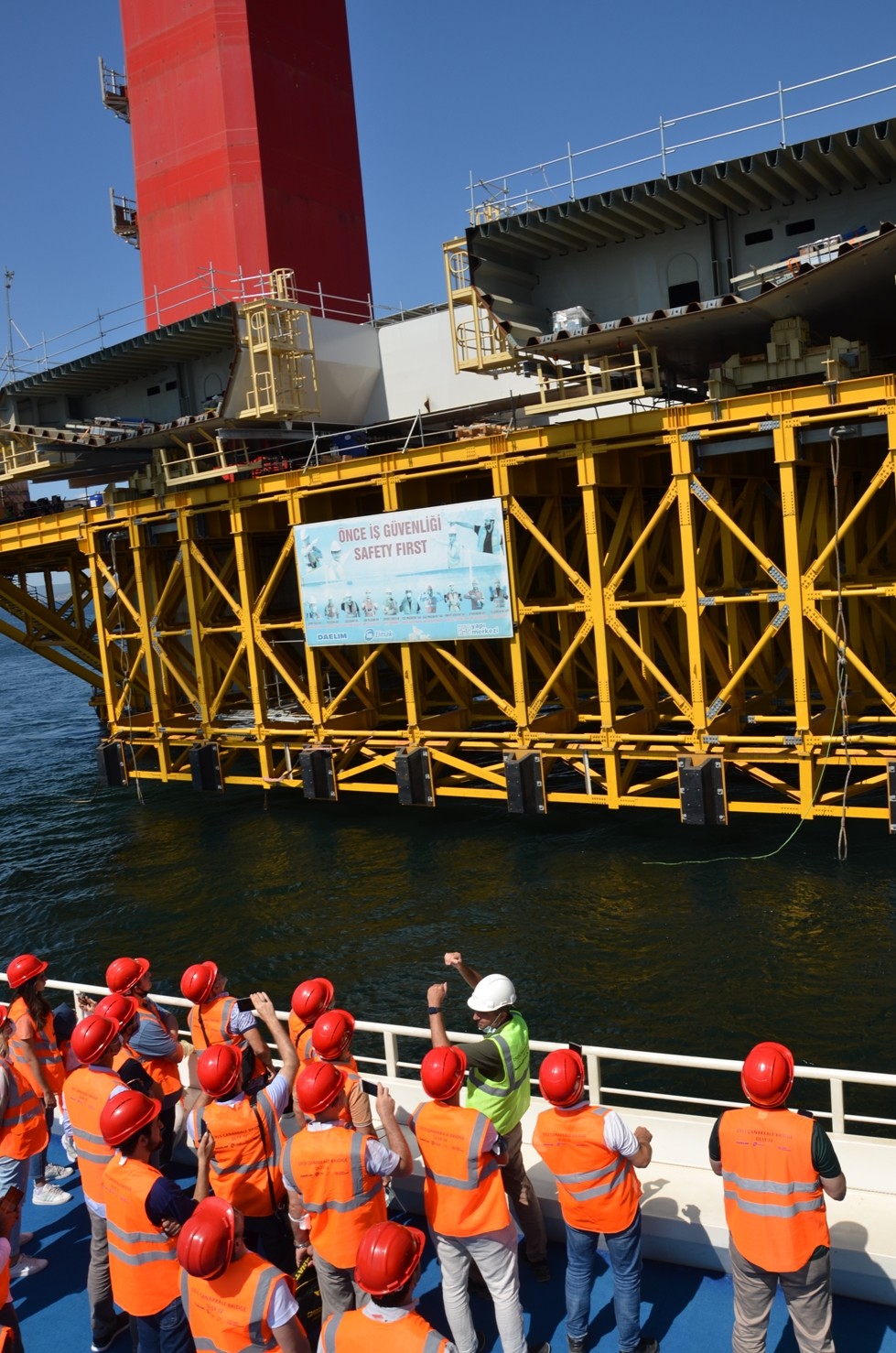 Heyeti ağırlamaktan memnuniyet duyduklarını belirten Proje Müdür Yardımcısı Alper Alemdaroğlu, yapının yapım çalışmalarının bütün hızıyla sürdüğünü söyledi. Projeyle ilgili teknik bilgiler de veren Alper Alemdaroğlu, "Projemizdeki kule ayak yüksekliği olan 318 metrenin üzerine Seyit Onbaşı'nın top mermisini temsil eden bir yapı koyacağız ve yüksekliği 334 metre olacak. 334 metre dünyanın en yüksek kule ayak yüksekliği olacak. Köprümüz kule yüksekliği ve ana açıklık olarak dünyanın en büyüğü olacak" dedi.
