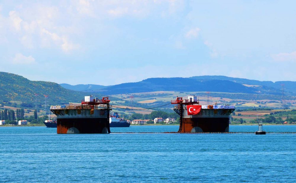 74 metre genişliğinde, 83,3 metre uzunluğunda, 20 metre yüksekliğinde ve 54 bin 800 ton ağırlığındaki Asya yakasına ait kule kesonu ise Lapseki ilçesi Şekerkaya mevkiine römorkörler eşliğinde yüzdürülerek, bölgeye çekildi.