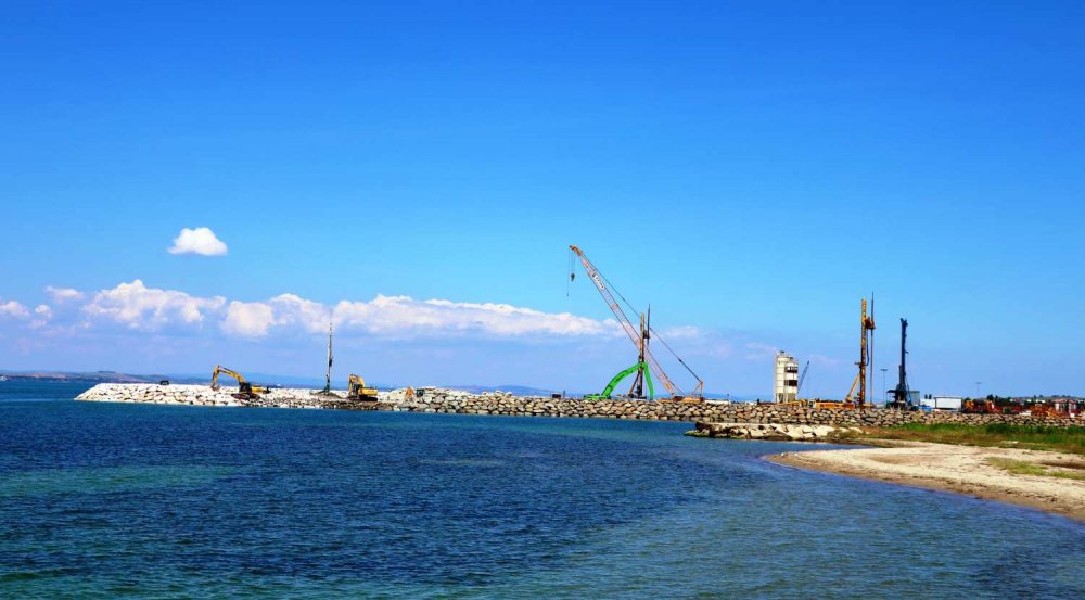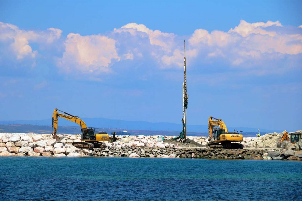 Çanakkale’nin Gelibolu ilçesi Sütlüce mevkii ile Lapseki ilçesinin Şekerkaya mevkileri arasında inşa edilen 1915 Çanakkale Köprüsü’nün ıslak havuzdaki kule kesonlarında, çelik şaft montajı tamamlandı.