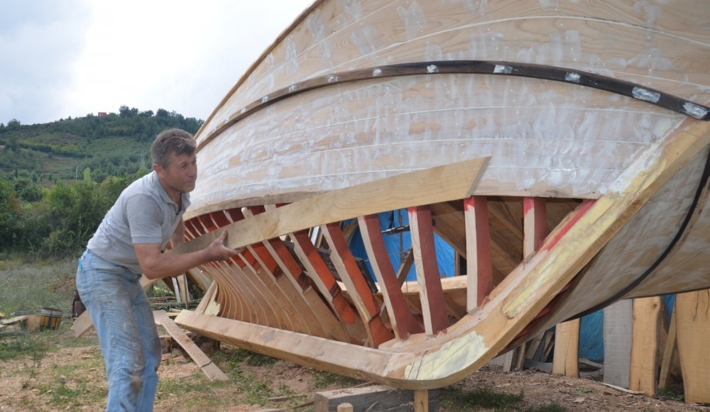 Samsun'un Yakakent ilçesinde yaşayan Ünsal Sarışan, 14 yaşında çırak olarak başladığı ahşap tekne imalatını çırak bulamadığı için tek başına sürdürüyor.
