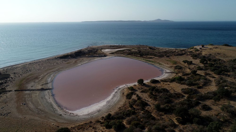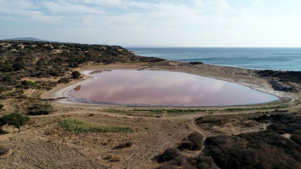 Alexandria Troas Antik Kenti'nin ticaret merkezi olarak uzun süre hizmet eden 2 bin yıllık iç limanı, günümüzde ise kalpli pembe göl olarak turizme katkı sağlıyor.
