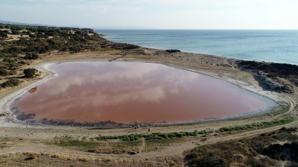 Çanakkale'nin Ezine ilçesine bağlı Dalyan köyündeki Alexandria Troas Antik Kenti'nin 2 bin yıllık iç limanı, zamanla denizle bağlantısı kesilince bir göle dönüştü. Ardından da doğa koşullarına bağlı olarak kalp şeklini aldı. İçerisindeki tuzlu su da yılın belli dönemlerinde pembe renge dönüşünce ortaya kalpli pembe göl çıktı. Bugünlerde yeniden pembeleşmeye başlayan kalp şeklindeki göl, ziyaretçilerin ilgisini çekiyor.