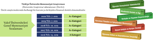 TÜMA (Türkiye Üniversite Memnuniyet Araştırması)sonuçlarına göre 2016 yılında A Kategori ve 2020 yılına kadar ise her yıl A + kategoride yer alarak Vakıf Üniversiteleri Genel Memnuniyet sıralamasında en üst seviyede yer almaktadır.