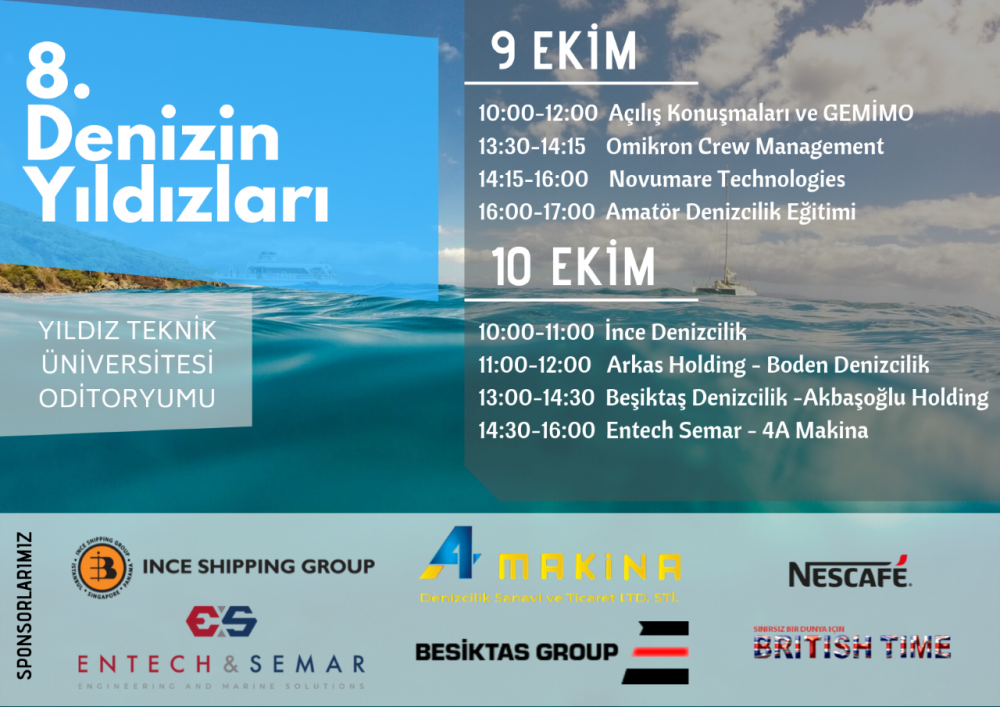Her sene geleneksel olarak YTÜ Gemi ve Denizcilik Kulübü tarafından düzenlenen Denizin Yıldızları Kariyer Günleri etkinliğinin 8.’si 9-10 Ekim 2019 tarihinde Yıldız Teknik Üniversitesi Beşiktaş Kampüsü Oditoryumu’nda gerçekleştirilecek.