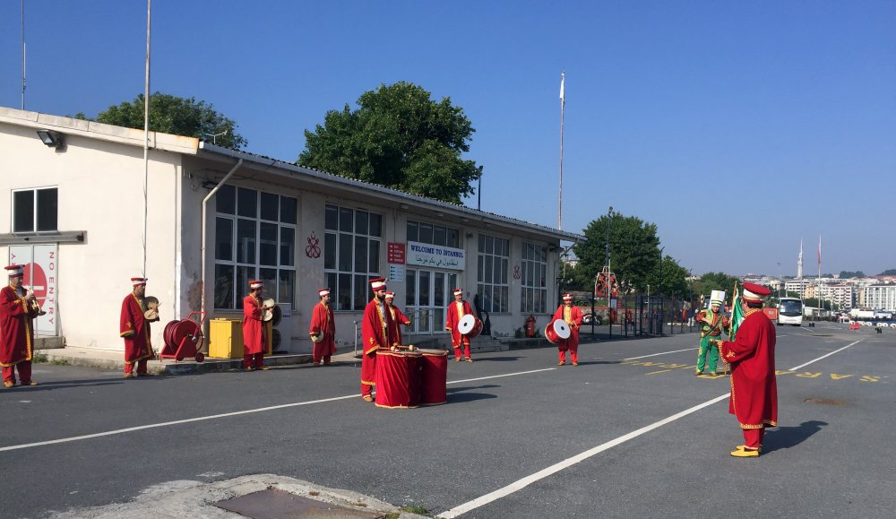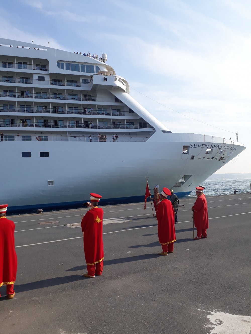 Yunanistan’dan 4 gün önce 722 yolcusuyla yola çıkan 10 katlı “Regent Seven Seas Vogayer” adlı lüks yolcu gemisi, ilk durağı olan Kuşadası’na uğradıktan sonra İstanbul Sarayburnuport’a geldi. Limana yaklaşan lüks ve dev yolcu gemisi için mehteranlı karşılama töreni düzenledi. Turistler mehteranı memnuniyetle karşılarken, törende İstanbul Karaköy Limanı Mülki İdari Amiri Vali Yardımcısı Mehmet Kalyoncu, Deniz Limanı Şube Müdürü Hakan Alparslan Kirbaş, Sarayburnuport Liman Müdürü Akın Demir ve Liman Müdürü Yardımcısı Adem Karaca hazır bulundu. Mehteran eşliğinde gemiden inen turistler kendileri için serilen kırmızı halıdan yürüdü. Bazı turistler mehteranı izlerken bazıları da hatıra fotoğrafı çektirdi. Öte yandan yetkililer, kruvaziyer turizminin 3.5 yıl aradan sonra tekrar hayata geçmesinden memnuniyet duyduklarını dile getirdi. 22 kruvaziyerin Ekim ayına kadar gelmesi beklenirken, 2020 yılında ise bu sayının 80’e çıkacağı öğrenildi.