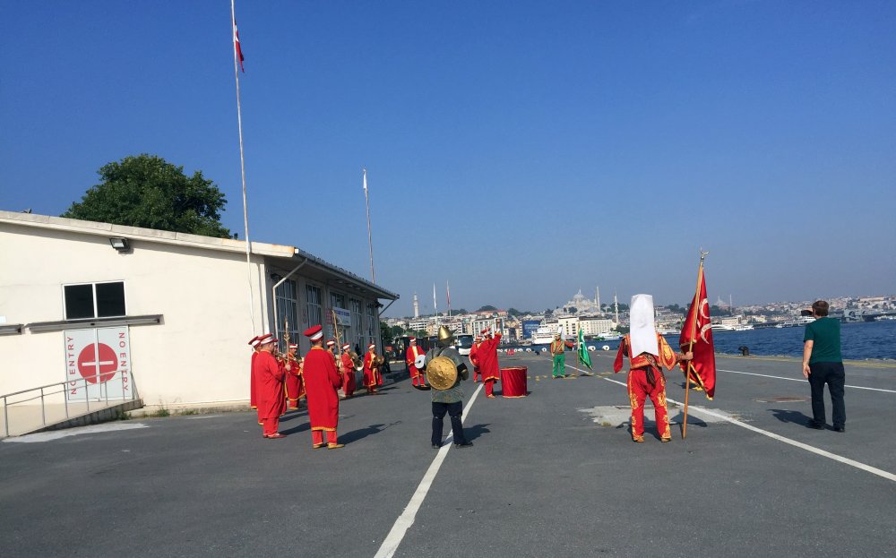 İstanbul Sarayburnu Limanına 3.5 yıl aradan sonra 722 yolcusuyla 10 katlı kruvaziyer gemisi geldi. Limana demir atan lüks yolcu gemisinden inen turistler mehteran takımıyla karşılandı.