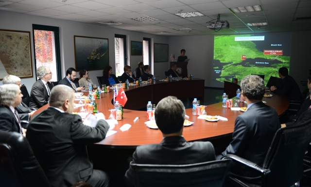 Genel Müdür Yardımcısı Caner ARSEVEN’in de hazır bulunduğu görüşmede Genel Müdür,konuk bakan Sn. Ernest MONİZ’e, Türk Boğazlarıyla ilgili istatistiklerle, boğazların jeopolitik ve stratejik önemi, seyir emniyeti ve güvenliğe yönelik yapılan uygulamalar hakkında çeşitli bilgiler verdi. Enerji alanındaki ulusal ve uluslararası gemi trafiği hakkında da bilgi verilen sunumun ardından soru cevaplarla, bilgi alışverişine devam edildi. Ayrıca Salih Orakçı, Ulaştırma Denizcilik ve Haberleşme Bakanımız Sn. Binali YILDIRIM’ın denizlerdeki seyir emniyetini artırmak amacıyla verdiği talimatlar doğrultusunda Kıyı Emniyeti Genel Müdürlüğü tarafından yapılan yatırımlardan da kısaca bahsetti. Türk Boğazlarında yapılan operasyonları yerinde görme imkânı da bulan konuk bakan ve heyet, operasyon odasında çeşitli incelemelerde de bulundu. Genel Müdür Sayın ORAKCI, birçok konu üzerinde görüş alışverişinde bulunulan ziyaretten dolayı memnuniyetini dile getiren ABD Enerji Bakanı Sn. Ernest MONİZ’e günün anısına bir plaket sundu.