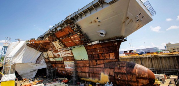 ABD yeni bir askeri canavar yaratıyor... Virginia eyaletindeki Newport'ta inşası devam eden 'dünyanın en pahalı uçak gemisi' ABD Deniz Kuvvetleri'ne tam 14 milyar dolara malolacak. Ford'un yeni nesil gemi teknolojisiyle üretilen gemi, savaş uçaklarından jetlere kadar dünyanın en güçlü hava taşıtları için hizmet edecek.
