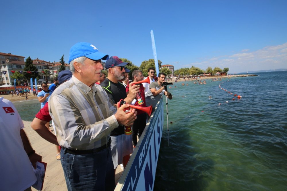 Kocaeli Büyükşehir Belediyesi tarafından gerçekleştirilen Açık Su Yüzme Şampiyonasına Türkiye’nin dört bir yanından sporcular katıldı. Kocaeli Büyükşehir Belediye Başkanı İbrahim Karaosmanoğlu ve Karamürsel Belediye Başkanı İsmail Yıldırım’ın ev sahipliği yaptığı Açık Su Yüzme yarışları birbirinden çekişmeli anlara yaşandı. Kocaeli Büyükşehir Belediye Başkanı İbrahim Karaosmanoğlu ve Karamürsel Belediye Başkanı İsmail Yıldırım’ın katıldığı yüzme yarışında kendileri de serin sulara girerek yarışmacılara eşlik ettiler. Yaş kategorisine göre düzenlenen yarışlarda dereceye giren sporculara ödüller Kocaeli Büyükşehir Belediye Başkanı İbrahim Karaosmanoğlu, Karamürsel Belediye Başkanı İsmail Yıldırım, Karamürsel Kaymakamı Ahmet Narinoğlu ve Karamürsel AK Parti İlçe Başkanı Recep Demirel tarafından verildi.
