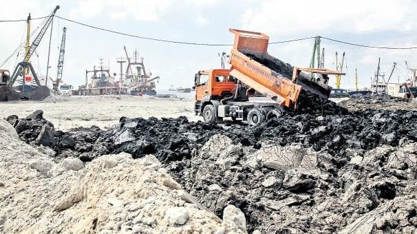 Teknelerle getirilen balçık, belediye başkanının odasından da görülen sahile 50 metre uzaktaki alana döküyor.
