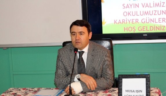 Hüseyin Celal Yardımcı Fen Lisesi salonunda düzenlenen ’Kariyer Günleri’ne, Vali Musa konuk oldu. Etkinliğe İl Milli Eğitim Müdürü Hatem Dursun, şube müdürü Murat Karakurt, okul idarecileri, öğretmenler ve öğrenciler katıldı. İlk olarak öğrencilerin sorularını yanıtlayan Vali Musa Işın,”Anne ve babanızı asla üzmeyin ve onları küçük görmeyin. Aileleriniz sizin için her şeyin en iyisini ister. Onlara hiçbir şekilde saygıda kusur etmememiz gerekir. Anne ve babanın duasını alırsanız inşallah muvaffak olursunuz. Anne abanızın yanı sıra öğretmenlerinize de lütfen saygılı olun. Biz, artık öğretmenine diklenen, saygısızlık yapan ve öğretmenine fiziki şiddet uygulayan öğrenci görmek istemiyoruz. Çok şükür ki sizler de bunları yapacak sevide öğrenciler değilsiniz. İyi eğitim alabilir ve fizik, kimya, coğrafya, edebiyat gibi dersleri iyi öğrenebiliriz ama iyi bir insan olmadıktan sonra bunların bir kıymeti yok. Kimse sizin matematik öğrendiğinize bakmaz. Çevrenizdekiler sizin iyi insan olup olmadığınıza bakar. Bizim iyi insan olabilmemiz için önce kendimizi tanımlamamız lazım. Biz kimiz, biz niye yaşıyoruz ve nereye gidiyoruz sorularını kendimize sormamız lazım. Bizim bu sorulara kendimizi tanımlayabilecek şekilde cevaplar vermemiz lazım. Bizi tanımlayan dinimizdir. Biz dinimizi iyi öğrenmezsek kendimizi tanımlayamayız. Önce iyi bir insan olacağız ve ondan sonrada iyi bir meslek sahibi olacağız. Mesleğimizde de başarılı olmak için ne gerekiyorsa hiçbir fedakarlıktan da kaçınmayacağız. Kendi yeteneklerinize ve çalışmak istediğiniz alana yönelik meslek seçiminde bulunun. Çevrenizdekilerin özellikle de anne ve babalarınızın sizin meslek seçiminiz ile ilgili kararlarına saygı duyun ama yapabileceğiniz ve yeteneğinize uygun olan mesleği seçin”dedi.