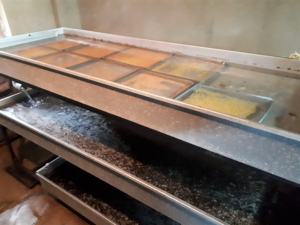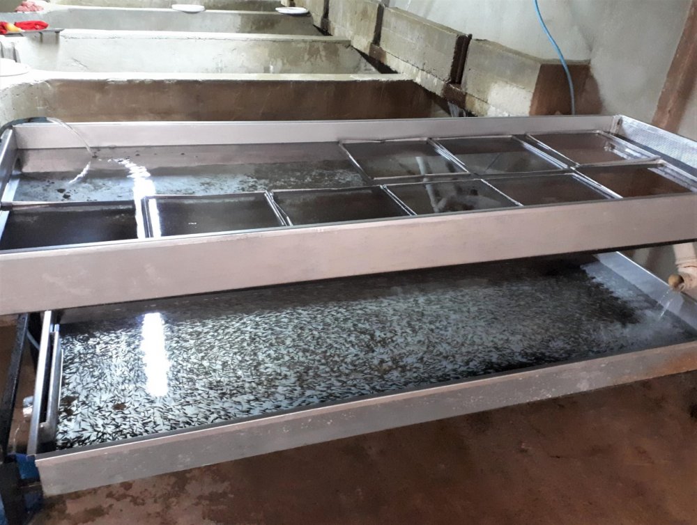 Sağım dönemi gelmiş olan anaç balıklardan önce dişi balıkların yumurtaları daha sonra erkek anaçların spermaları sağılır. Dişi balıklardan sağılan yumurtalar ile erkek balıkların spermaları karıştırılıp, 7-15 dakika döllenmesini bekledikten sonra yumurtalar yıkayıp özel kuluçka dolaplarına konulur. Dolaplarda 31-60 gün bekletilen yumurtalardan yavrular çıkmaya başlamaktadır.