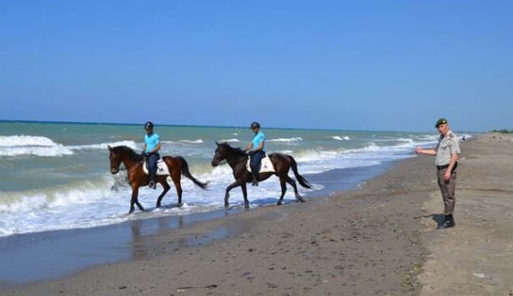 Alaçam sahilinde atlı jandarma görevde