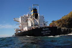 SeaNews Turkey'de yer alan habere göre, Yunan armatöre ait 75.300 DWT'luk dökme yük gemisi M/S Oliva İngiltere'nin Güney Atlantik'teki kolonisi Tristan da Cunha Adalarına ait Nightingale Adasında 16 Mart günü karaya oturdu.