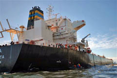 Gemi, soya fasülyesi yüküyle Brezilya'nın Santos Limanından Singapur'e gitmekteydi.