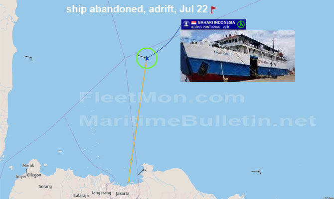 Yolcu ro-ro kargo gemisi BAHARI Indonesia 21 Temmuz akşamı Cakarta'nın kuzeyindeki Java denizinde, Pontianak'a giderken alev alev yanmaya başladı.