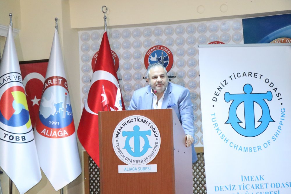Konuşmasına Türkiye ve Aliağa gündemiyle devam eden Başkan Şimşek katılımcılarla kısa bilgiler paylaştı. “2019’un ilk 4 ayında Aliağa’ya 1.638 adet gemi gelmiş olup, Dikili ve Ayvalık ile beraber bu sayı 1.806 adettir. Bu gemilerin toplam grosu yaklaşık 31,5 milyondur. Türkiye’ye 16 bin 238 adet gemi gelmiş olup, geçen yıla göre 7 bin gemilik bir azalma yaşandığı görülmektedir. Sorumluluk sahamızdaki limanlarda nisan ayı sonu itibariyle yaklaşık 8 milyon 750bin ton yükleme, 13 milyon ton boşaltma olmak üzere; toplam 21 milyon 800 bin tonluk yük elleçlenmiştir. Türkiye’de ise yaklaşık 115 milyon ton yük elleçlenmiştir. Gemi sayısındaki düşüşten de anlaşılacağı gibi geçen yılın ilk çeyreğine göre 1,5 milyon tonluk bir azalma yaşanmıştır. Aliağa limanlarında işlem gören konteyner âdeti yaklaşık 245bin olup,3 milyon 350 bin ton yük konteynerla taşınmış demektir. Türkiye’de ise yaklaşık 2 milyon 400bin adet konteyner yükü elleçlenmiş olup, Aliağa Türkiye’de sıralamasındaki 5. yerini korumaktadır” dedi.