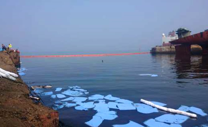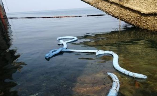Aliağa ile Tavşan Adası sahilinde oluşan deniz kirliliği bariyerler ile kontrol altına alınarak absorbantlar ve petrol sıyırıcıları ile toplandı.