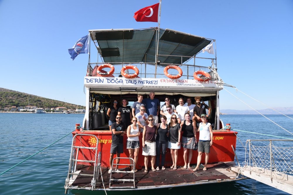 Almanya’nın önde gelen dalış kulüplerinden biri olan ve dünyanın önemli merkezlerine organizasyonlar düzenleyen TUK (Tauchsportgruppe an der Universitat Kiel) üyesi 14 kişilik dalgıç grubu, bir hafta boyunca Karaburun ve Çeşme’de dalış yaptı. Sportif dalışın yanı sıra deniz biyolojisi ile de ilgilenen kulüp üyeleri, Karaburun’da Büyük Ada civarındaki dalış yerleri ile 9 Eylül ve Alaybey gemilerine; Çeşme’de ise Ayrık Taş ve Monem Batığı’na daldılar.