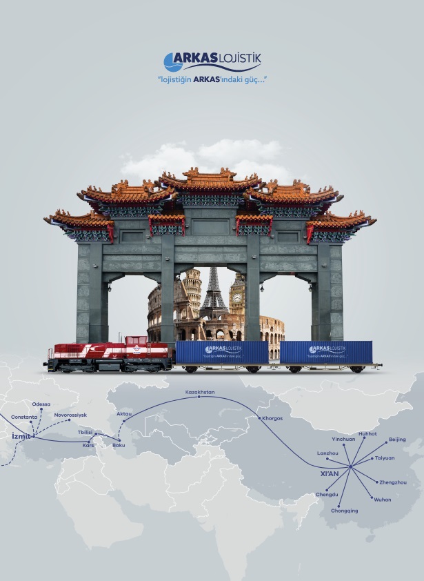 Arkas Lojistik’ten demir yolunda öncü bir hamle daha... 2017 yılında BTK(Bakü-Tiflis-Kars) demiryolu hattında ilk demiryolu taşımasını başlatan Arkas Lojistik, Çin-Türkiye Demir İpek Yolu’nda Marmaray bağlantısı ile transit olarak Avrupa’ya yük taşımaya başladı.