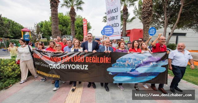 DİSK Başkanı Arzu Çerkezoğlu ise şunları söyledi: “Bugün emeğimizi, doğamızı, insana dair ne varsa her şeyi değersizleştiren düzene karşı buradayız. DİSK olarak burada dostlarımızla birlikte zehir gemisinin topraklarımıza, İzmir’e, ülkemize girmesini engellemek ve dur demek için buradayız. Rant uğruna işçi sağlığını, doğamızı yok sayarak bu geminin gelişine izin veriyorlar. Eğer o gemi su alırsa hepimiz batacağız diyorlar ya herkes bilsin yıllardır bu ülkede emeğimizi değersizleştirenlerin, doğamızı sermayeye peşkeş çekenlerin bu ülkenin tüm değerlerini yok sayanların gemisinde bir hiçbir zaman olmadık, olmayacağız. Onların zihniyetinin gemisidir bu. Bizim gemimiz İzmir’in özgürlük rüzgarı ile yol alan Ege sularında yürüyen yelkenlilerdir. Bu süreçte üzerimize düşeni yapacağız ama biliyoruz ki bizleri yok sayan her şeyi piyasaya açan düzen artık tüm dünya halklarının geleceğini tehdit ediyor. Emek temelinde yeni bir toplumsal düzeni inşa etmek için bugünden yarına daha fazla omuz omuza vererek mücadelemizi büyüteceğiz.”