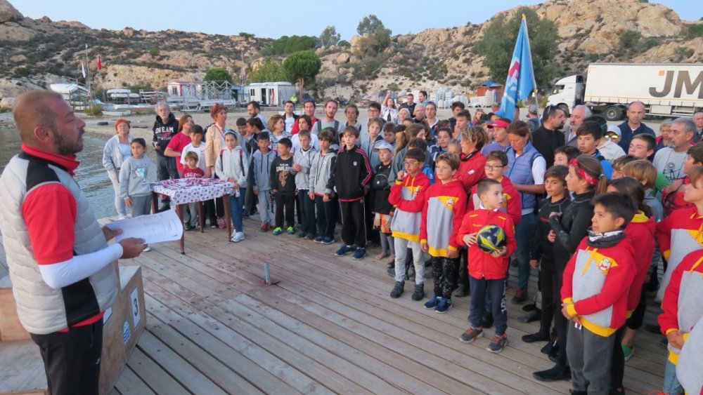 Foça Belediyesi Karakum Plajı Tesisleri’ndeki madalya töreninde, Foça Belediyesi Meclis Üyesi Raşit Dirim, Türkiye Yelken Federasyonu temsilcileri, müsabaka hakemleri ve kulüp yetkilileri, dereceye giren sporculara madalyalarını verdi.