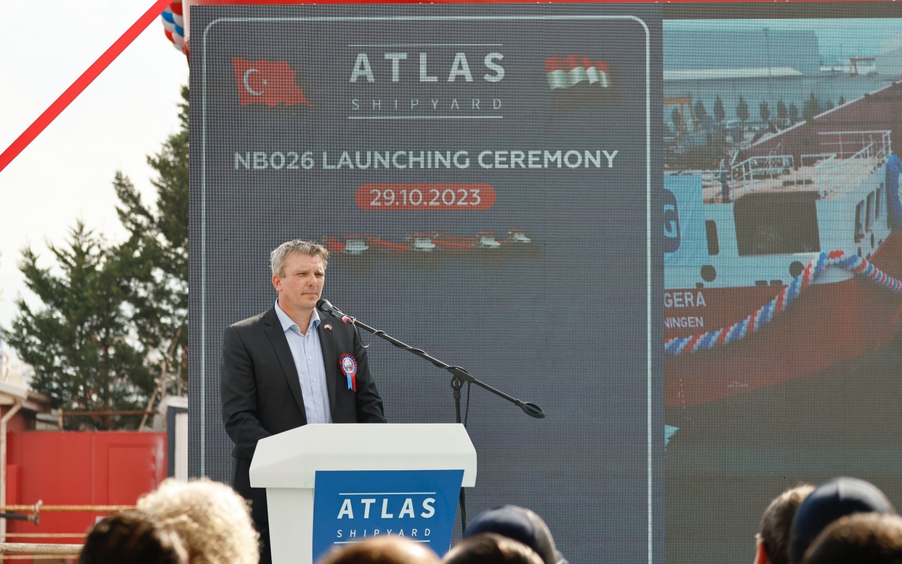 ‘’Ben bu 4 gemilik anlaşmanın Longship ile başlayan uzun vadeli bir iş birliğinin ilk adımı olmasını diliyorum. Ve bu vesileyle Atlas Tersanesi ile Longship arasındaki iş birliğininin kurulmasında çok önemli rolü olan Longship’in ortaklarından sayın Oyvind Sivertsen’e özellikle teşekkür etmek istiyorum. Kendisi bu projenin her aşamasını yakından takip ederek en güzel sonucun elde edilmesine çok katkıda bulundu. Bu geminin suya indirilmesi, şüphesiz büyük bir ekip çalışmasının sonucudur. Bu geminin inşasında ve denize iniş töreni hazırlıklarında emeği geçen tüm ekibimize, proje yönetimine, Atlas tersanesi çalışanlarına ve taşeronlarımıza ayrıca şükranlarımızı sunuyorum’’ dedi.