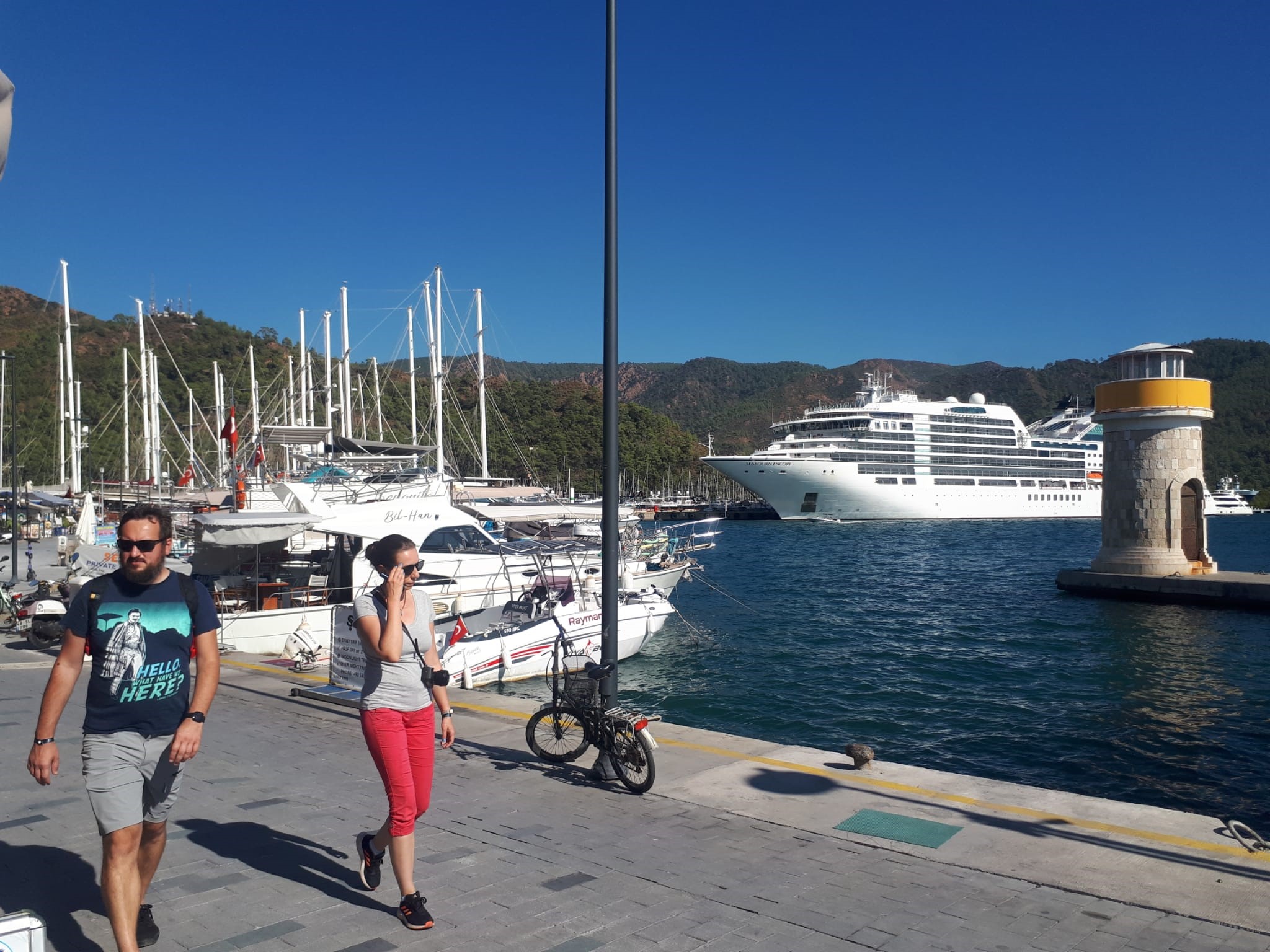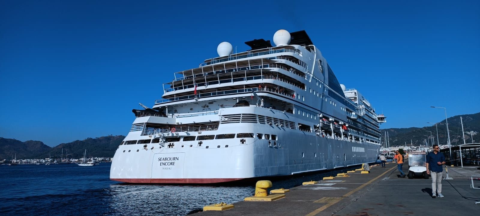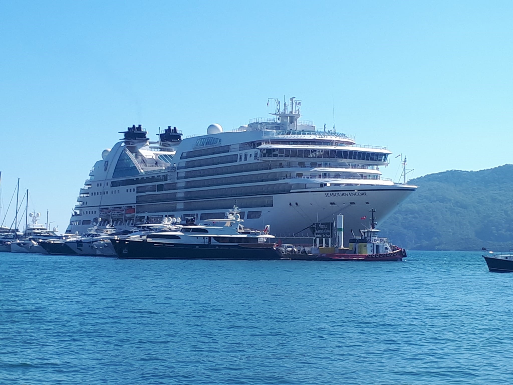 211 metre boyunda 36 metre enindeki Bahama bayraklı Seabourn Encore isimli Yolcu gemisi, Girit limanından gelerek Marmaris’e yanaştı. 560 yolcusu gemiden inerek Marmaris çarşı, yat limanı ve kırsal mahalleri ve Dalyan’ı gezmek üzere turlara katıldılar.