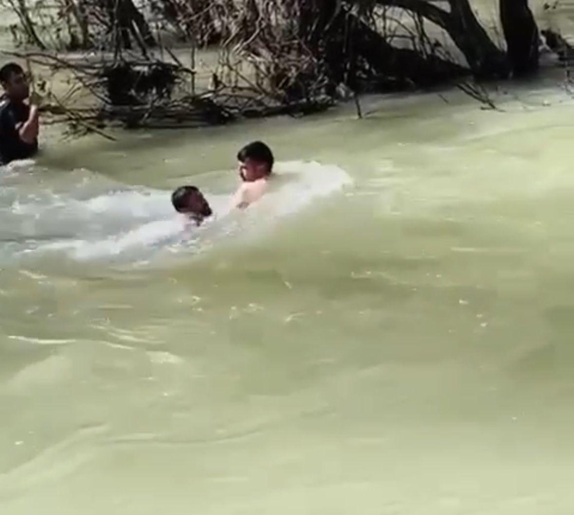 Boğulma tehlikesi geçiren Askeri K.’yi arkadaşları çaydan çıkarıp kurtardı. O anlar cep telefonu kamerasıyla kaydedildi.