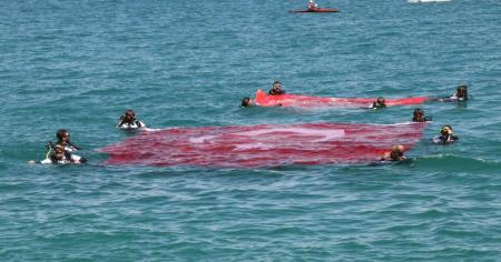 Küçükçekmece Menekşe sahilinde teknelerle bir araya gelen vatandaşlar, 30 Ağustos Zafer Bayramı’nda süsledikleri tekneleriyle Florya Atatürk Köşkü ve Yeşilyurt Hava Harp Okulunu selamladı.