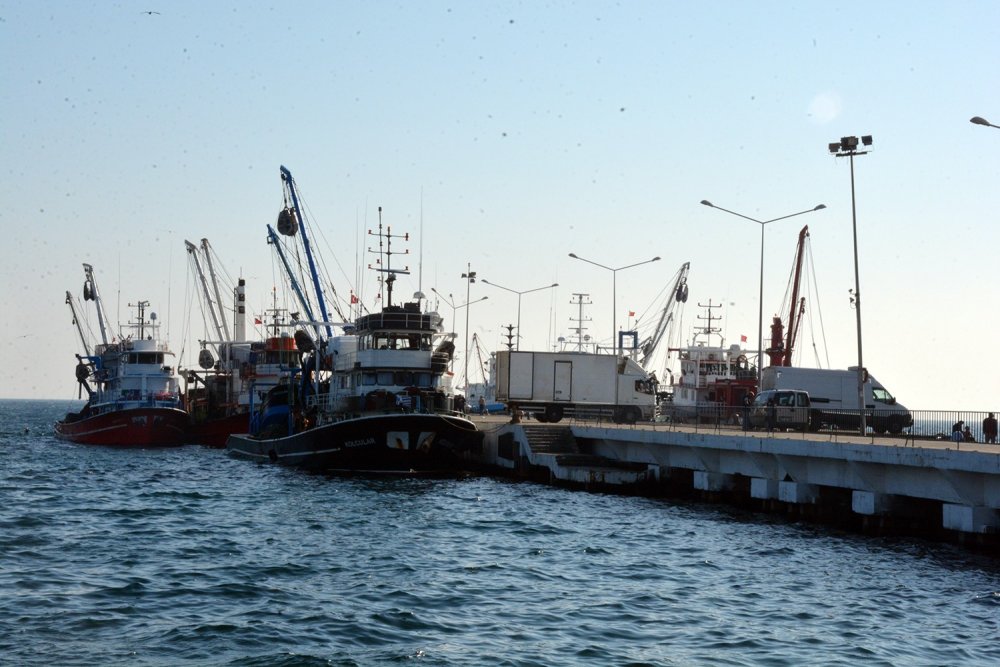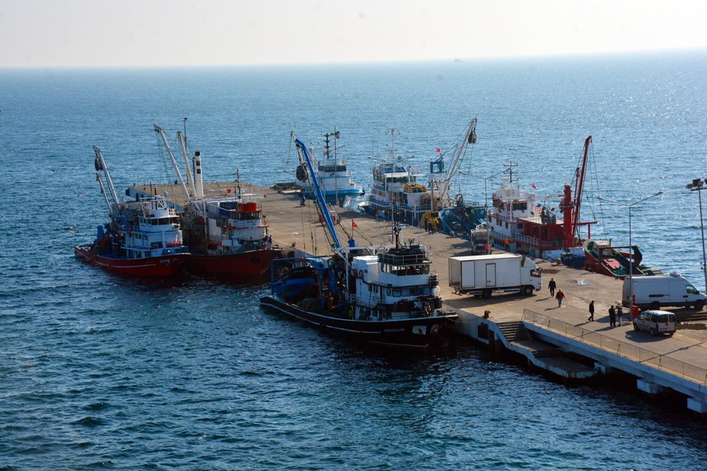 Türkiye’nin balık merkezlerinden olan Sinop’ta, iskelede balıkçı gemileri avlanmak için bekleyişlerini sürdürüyor.