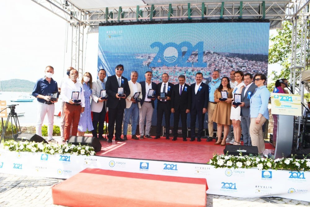 Konuşmaların ardından, 2021 yılında ülkemizde otel, marina, yat ve turizm teknelerinde dalgalanacak "Mavi Bayraklı Tesisleri" temsilen "Mavi Bayrak" alan tesisler adına göndere Mavi Bayrak çekildi. Törene ev sahipliği yapan Ayvalık Belediye Başkanı Mesut Ergin, Balıkesir Büyükşehir Belediyesi Başkanı Yücel Yılmaz ve Balıkesir Valisi Hasan Şıldak'a teşekkür plaketi verildi.