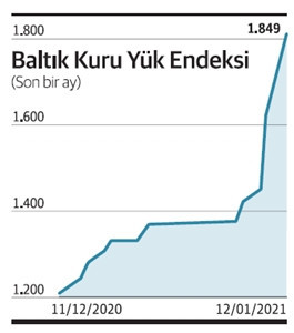 Küresel ekonominin öncü göstergelerinden Baltık Kuru Yük Endeksi’nde (Baltic Dry Index-BDI) tarihi bir hareket yaşanıyor. BDI, 10 yıldan uzun süredir ilk kez ocak ayında hızlı yükselişe geçti. Endeks, son bir haftada yüzde 35'e yakın artarak bin 850’ye dayandı. Uzmanların verdiği bilgiye göre, imalat sanayiinde ekonomiye yönelik beklentiler arttı, satın almacılar siparişlerini hızlandırdı. Emtia fiyatlarındaki yükseliş de BDI’deki artışta etkili oldu, sanayide stoklama eğilimi başladı. Öte yandan, ABD Başkanı Trump’ın gidişinin de piyasalara olumlu yansıdığı ifade ediliyor.