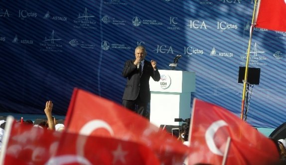“Yavuz Sultan Selim Köprüsü sadece bir köprü değil” diyen Yıldırım, “Aynı zanda bir sanat eseri bir mühendislik köprüsüdür. Üzerinden demir yolu geçen en uzun köprüdür. 11. dönem cumhurbaşkanımız Abdullah bey ve Cumhurbaşkanımız Recep Tayyip Erdoğan’ın da bulunduğu o büyük gün bu köprü 3 yılda bitecek demiştik. Bu aziz millet korksaydı 15 Temmuz gecesi bir daha aydınlanmayacaktı. Recep Tayyip Erdoğan gidin meydanlara dedi ve 79 milyon meydanlara indi. Bu köprü sadece İstanbul’a hizmet etmiyor. Bu köprü Uzakdoğu’dan yola çıkıp Londra’ya giden tarihi ipek Yolu’ndaki bütün yolculuklara hizmet ediyor” ifadesini kullandı.