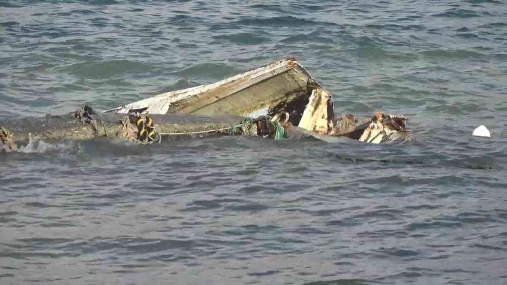 Balıkçınının, batan teknesini kurtarmak için dalgalara girerek verdiği mücadele cep telefonu kamerasına yansıdı.