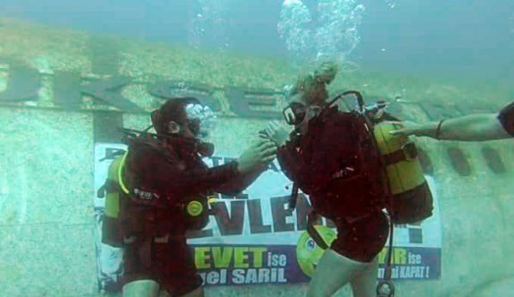 Kuşadalı genç iş adamı, reklamcı kız arkadaşına Kuşadası Körfezi’nde su altındaki Airbus A 300 uçağının batığında evlenme teklif etti.Aydın Büyükşehir Belediyesi tarafından satın alınarak su altı turizmini geliştirmek amacıyla...