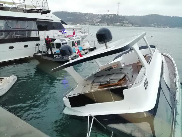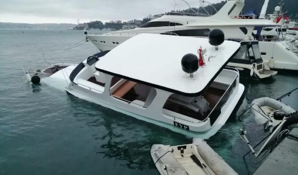 Sahile gelen tekne sahipleri ise olayı sahil güvenlik ve deniz polislerine haber verdi. Ekipler, teknenin çevresinde güvenlik önlemi alarak batmaması için çalışma başlattı. Lüks teknenin yarısına kadar suya battığı ve eğildiği görülüyor.