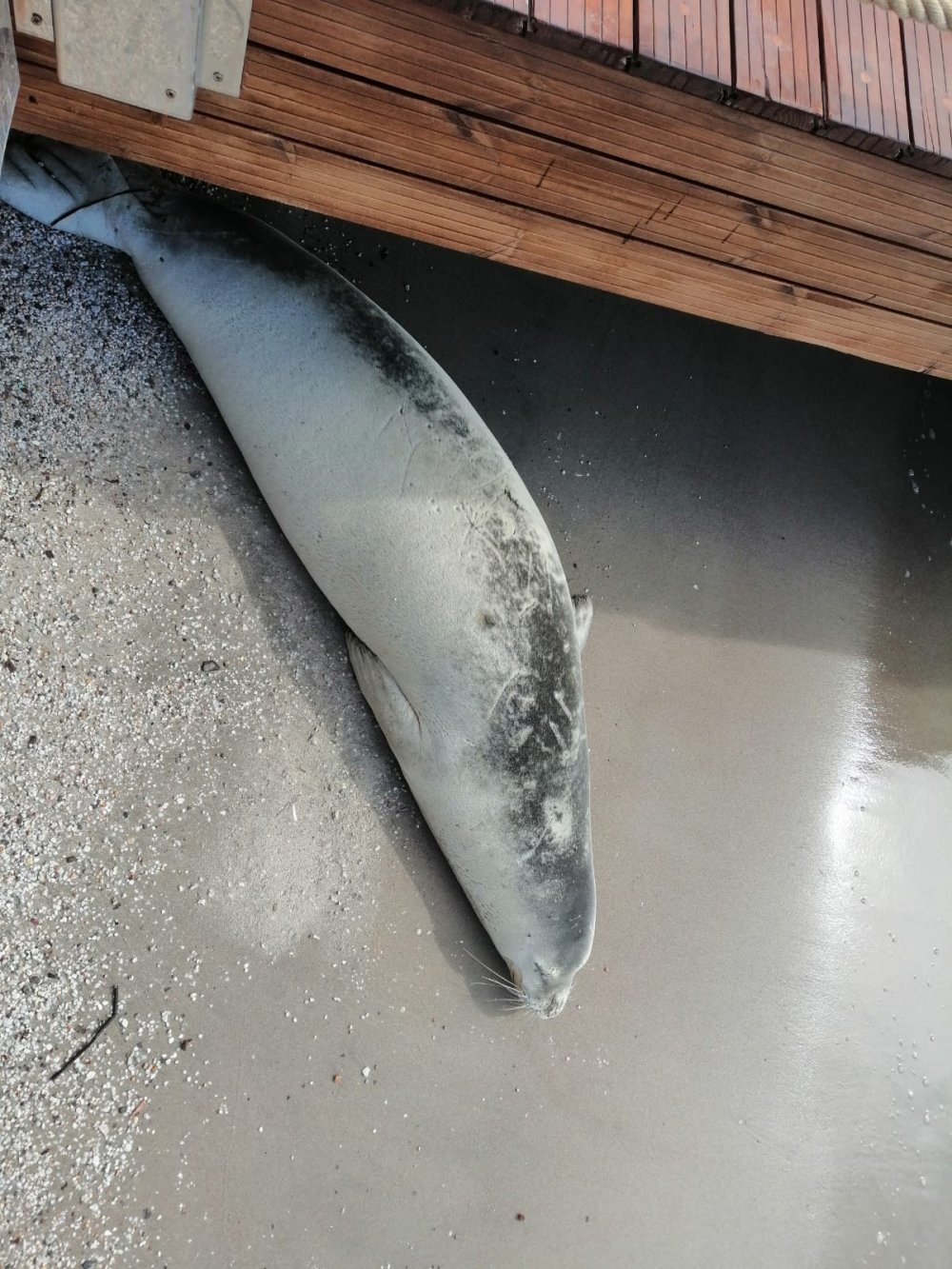 Muğla’nın Bodrum ilçesini mesken tutan beyaz fok balığı görenleri şaşkına çevirdi. İnsanlardan kaçmayan fok balığı Gümbet koyunun maskotu haline geldi.