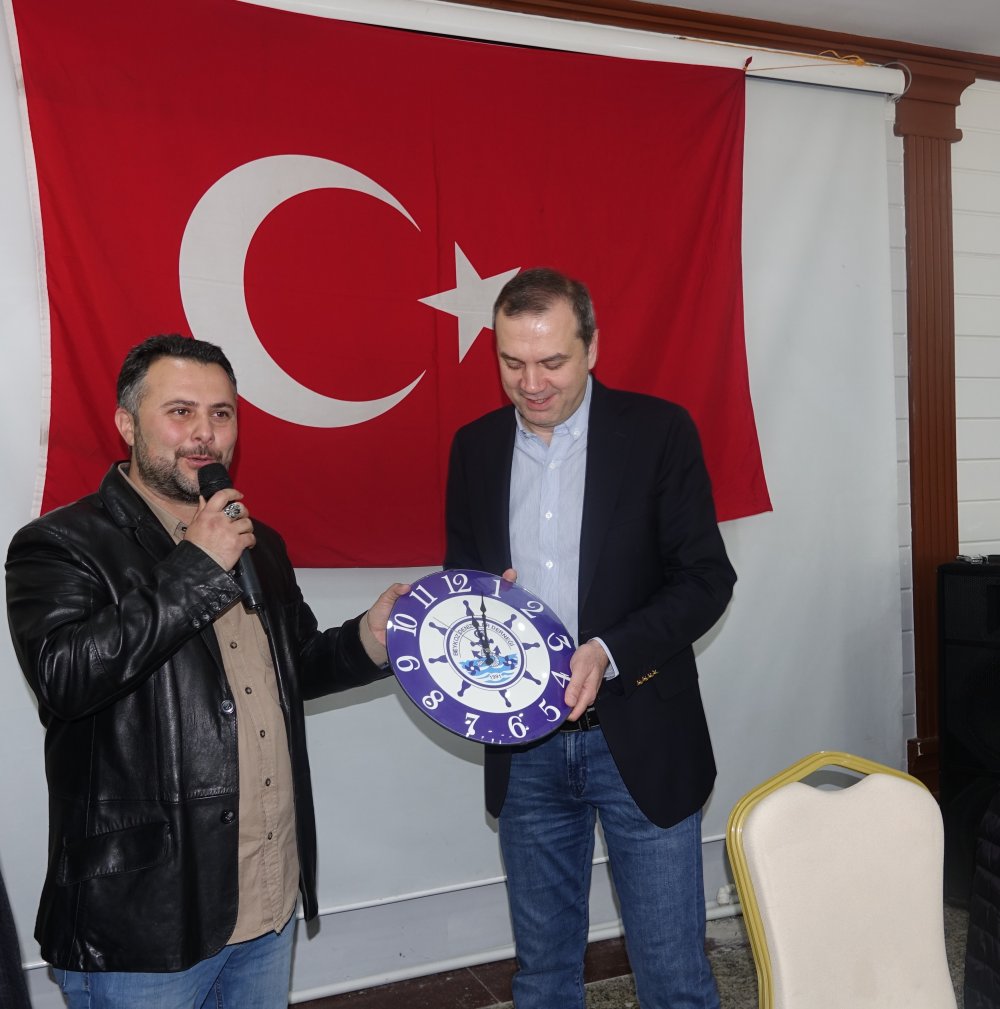Kahvaltıdan sonra Beykoz Denizciler Derneği Başkanı Kaptan Bilgehan Murat Miniç İMEAK DTO Yönetim Kurulu Başkanı Tamer Kıran'a dernek amblemli duvar saati hediye etti ve hep birlikte fotoğraf çekimi yapıldı.